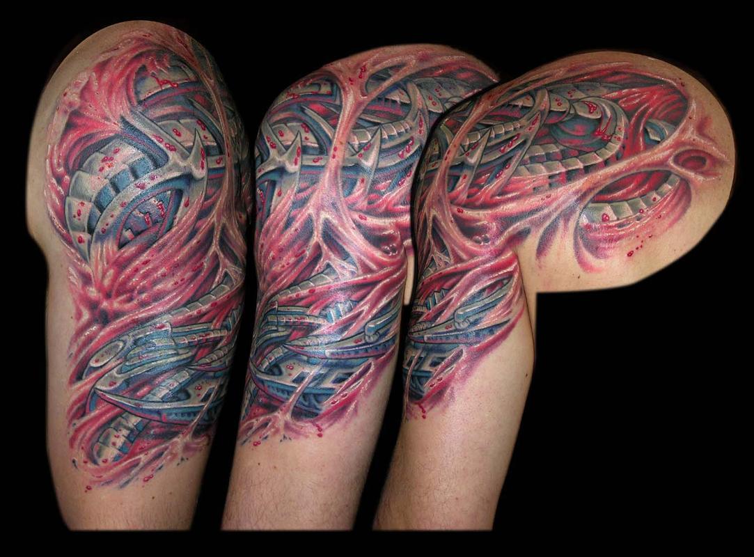 Aaron Goolsby Tattoos Body Part Arm Bio Mech And Skin Rips Cover Up Half Sleeve